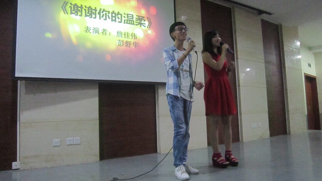 时光如梭,年华似水,经历了日夜斗转星移,我们一路走来,站在了新的起点上。在四位主持人亲切真诚的问候声里,表演正式拉开帷幕。一开场,三位同学共同带来的爵士舞表演《Huh》带动了全场的气氛,热情奔放的舞姿展示出动人的青春风采;紧接着,是深情的情歌对唱,一首《红色高跟鞋》在表演者的演绎下带给观众全新的体味,一曲《问》满含柔情,一支《如果的事》唱出万重心事。如雷的掌声里,青春的音符在跳动,个性的脉搏在延续。作为中场游戏环节的抢歌游戏吸引了很多同学参与,充分调动了现场气氛,欢笑洒满会场。表演的后半场在悠扬的丝竹声中开始,葫芦丝独奏《青花瓷》让观众仿佛置身于清丽的江南赏一段凄迷的烟雨;情歌对唱《谢谢你的温柔》和富有外院特色的外语联唱再次点燃全场,或轻柔或奔放,都是同学们用心唱出的绚丽乐章;诗音画《相信未来》用深情的语言诠释着情怀,与在场的同学们共勉,怀揣坚定的信念走向未来。晚会特别邀请了外院各班的几位班导上台,她们展歌喉诉心曲,赢得了台下阵阵由衷的掌声。晚8时许,在漫天的繁星下,晚会圆满落幕。
