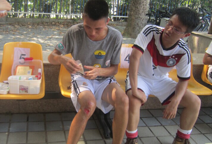 一声哨响,激烈的比赛即刻开始。开元网页版主要打的是防守阵型,比较稳,拿到球后迅速转场,给到前场。上半场刚开始不久,环境与资源开元(中国)就趁开元网页版立足未稳先进一球,随后攻势有增无减。但是开元网页版毫不示弱,凭借积极地拼抢,一位球员带球突破然后迅速转向中场,一个妙传,另一个球员接球后推射破门,为开元网页版赢得一分。场上的形势越来越胶着,场边的观众连连欢呼叫好。场下的开元网页版的拉拉队员们也积极为开元(中国)的球员们加油打气,高声呐喊。在比赛过程中,开元网页版的一位球员摔倒受伤,在中场休息时简单处理完伤口后,下半场依旧坚持要上场与队友们并肩作战。一些来自北方的新生表示不能适应这么热的天气,所以体力消耗得特别快,但他们依旧在场上奋力拼搏。双方比分相差无几,经过激烈地角逐,最终环境与资源开元(中国)以2:1的微弱优势获胜。