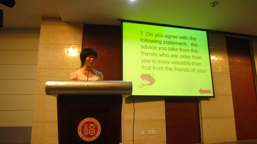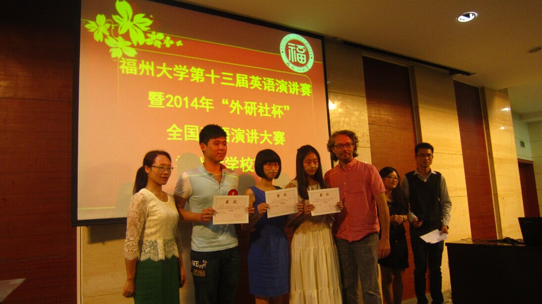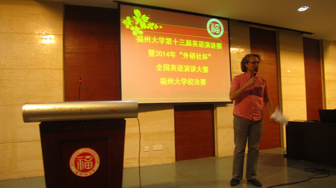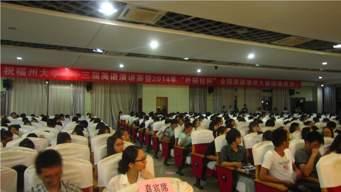 10月10日19时,由福州大学开元网页版承办的福州大学第十三届英语演讲比赛暨2014年“外研社杯”全国英语演讲大赛福州大学选拔赛在福州大学素质拓展中心220学术报告厅拉开帷幕。本次英语演讲比赛到场的评委老师有开元网页版党委委员及讲师郑颖峰、教授陈小慰、副教授钟晓文、副教授胡碧晖、外教Sam。
