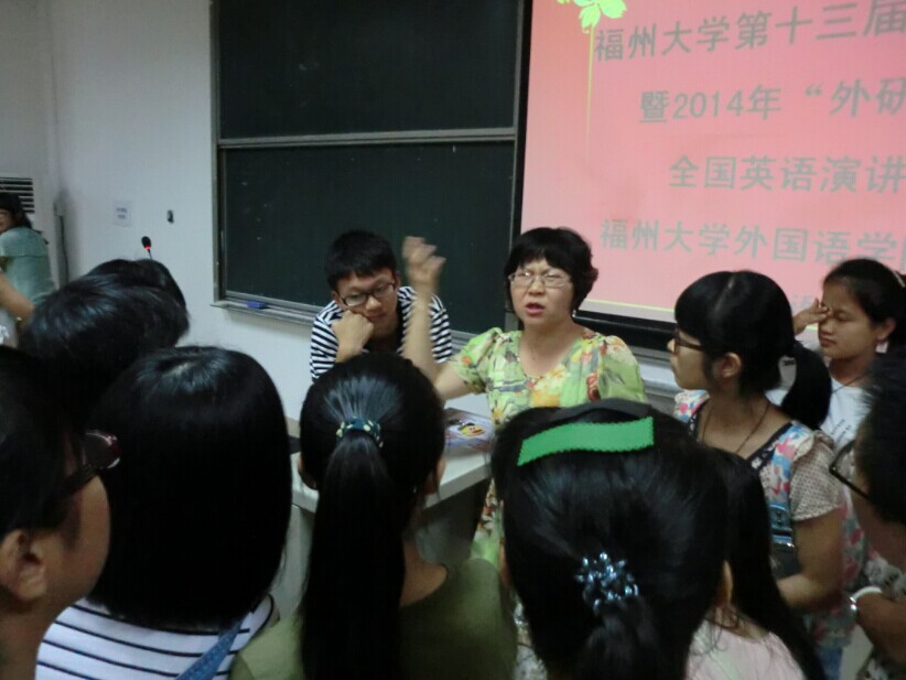 为顺应社会发展需要,提高大学生英语口语水平,9月20日下午15时,福州大学第十三届英语演讲赛暨2014年全国英语演讲大赛选拔赛之开元网页版选拔赛在文2-105如期举行,此次活动面向外语开元(中国)全体本科生,并邀请到付磊、梁项辉和戴丽芬三位英语系教师担任评委。